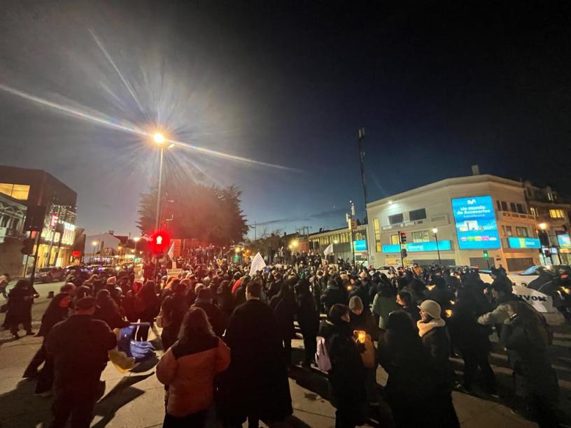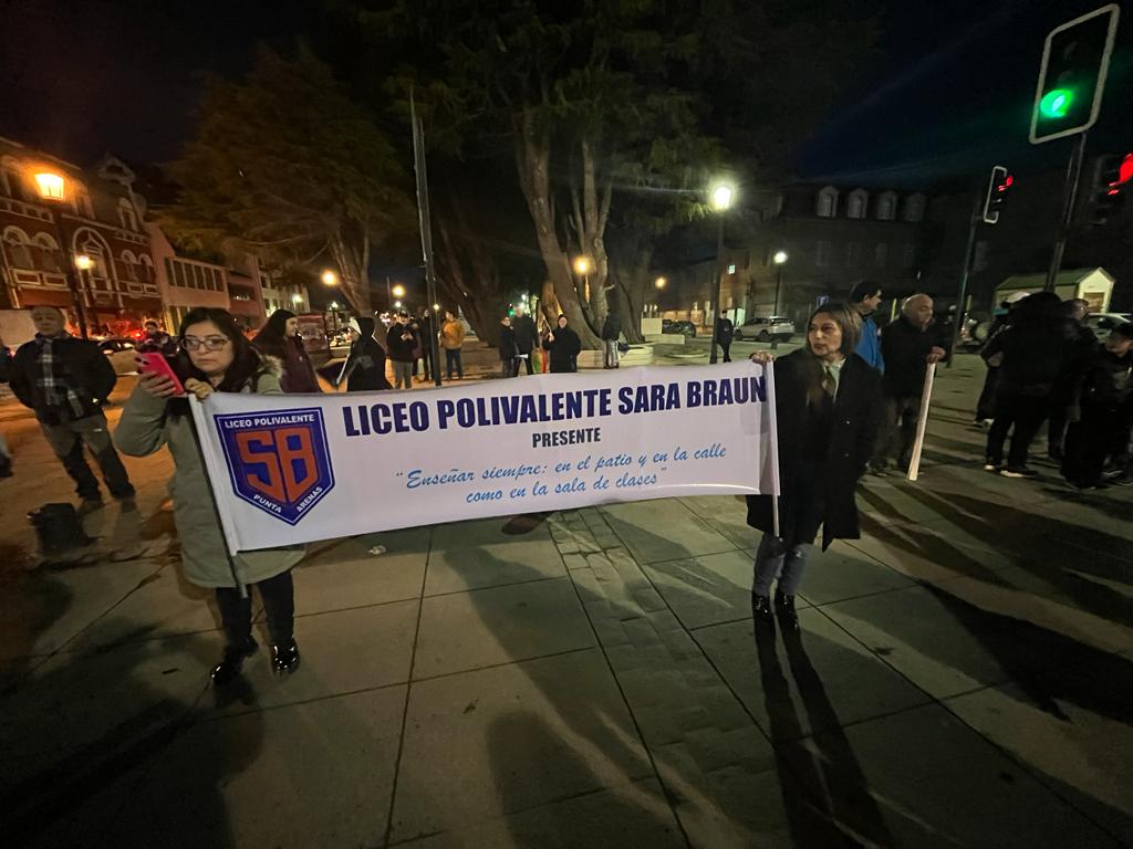 Más de 300 docentes y asistentes de la educación o para docentes se reunieron en la Plaza de los Derechos Humanos en la intersección de Colón y Bories de Punta Arenas.