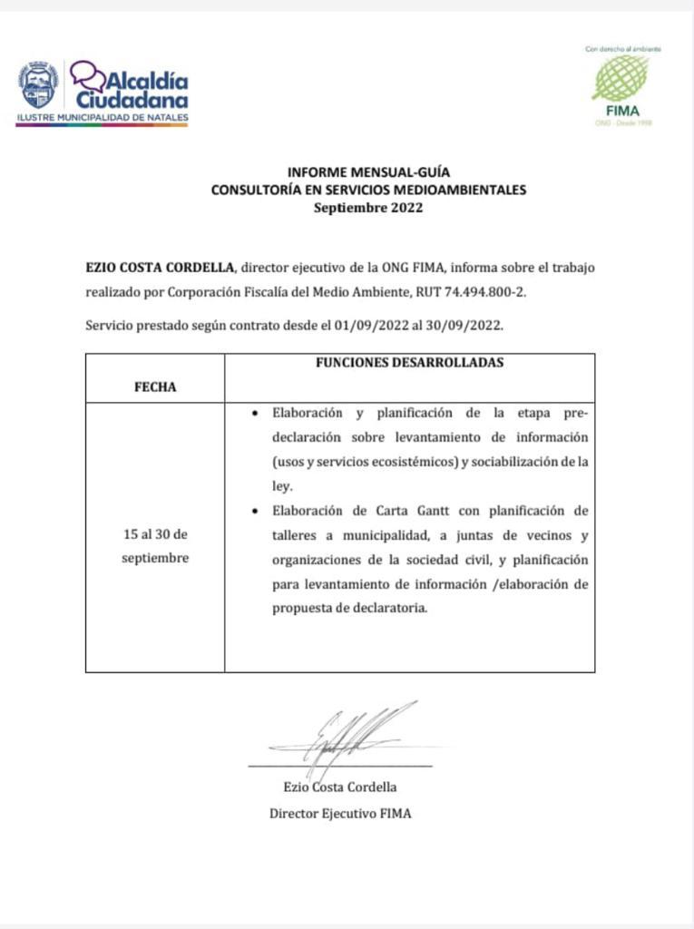 Quién firma las certificaciones por actividades realizadas es Enzo Costa Cordella, director ejecutivo de FIMA. Costa fue, según recuerda El Líbero, el vocero ambiental de la campaña del presidente Gabriel Boric, abogado de la poderosa ONG ambientalista Oceana de la familia Rockefeller, vocero de la ministra de Medio Ambiente, Maisa Rojas y autor del libro “Por una Constitución Ecológica”.