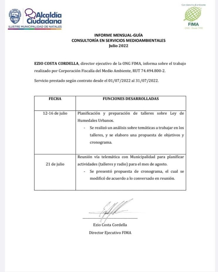 El municipio de Puerto Natales envió a los concejales los antecedentes parciales del contrato directo en 2022 con la ONG FIMA por una asesoría referida a los humedades urbanos de la localidad.