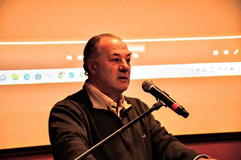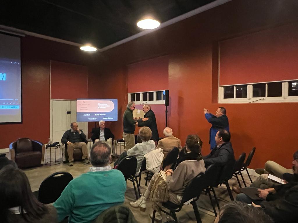 Durante la charla también se aprovechó a homenajear la figura del histórico empresario Eugenio Suárez quién recibió una plaqueta de manos de otro empresario natalino como es John Maclean.