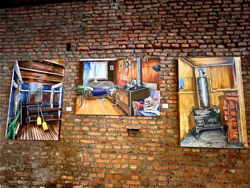 En la última pared de El Galpón Patagonia se observan una serie de instantáneas propias del tesoro lumínico que Ruiz ha encontrado en estancias y casitas semi rurales.
