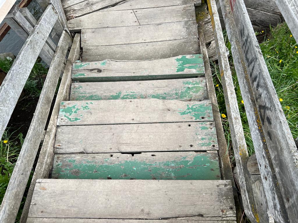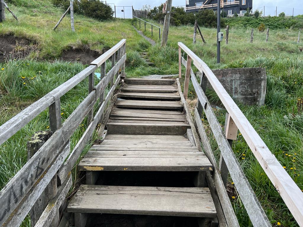 Después de una denuncia que hizo este medio sobre el lamentable estado de la estructura el municipio envió a funcionarios a realizar reparaciones. Lamentablemente estas parecen haber quedo por la mitad. Apenas si se cambiaron las barandas, pero los escalones quedaron sin refaccionar.