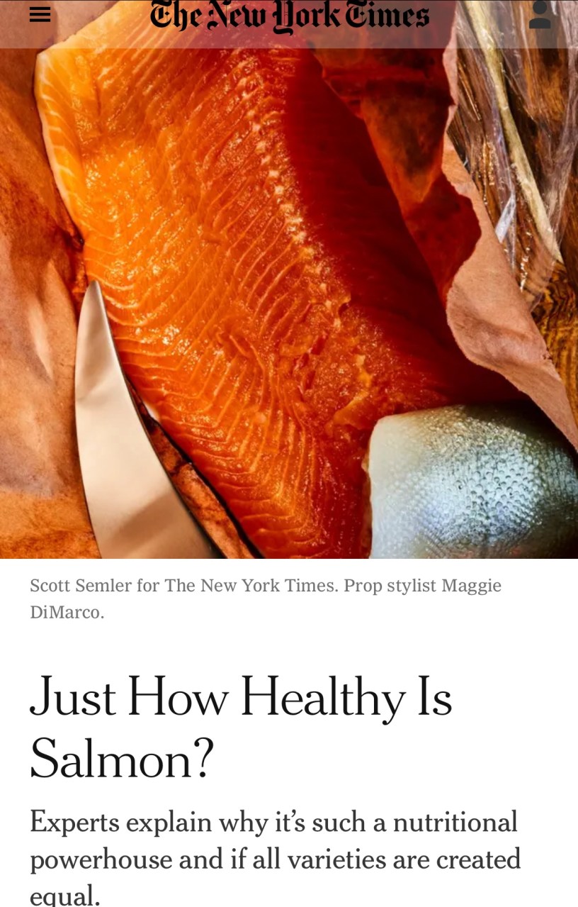 El diario más importante del mundo The New York Times publicó un extenso artículo en el que son entrevistados científicos y expertos de destacadas universidades quienes recomiendan el consumo de salmón y confirman que no existen diferencias de calidad entre el salmón de cultivo y el salvaje.