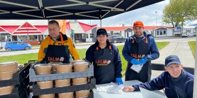 Asociación de Salmonicultores de Magallanes, Ciudad, Cocina, Salmonicultura «Salmón a la vasca»: se realiza la venta del tradicional plato en Natales en el marco de las Salmojornadas 2023 3 de noviembre de 2023 — 0 Comentarios